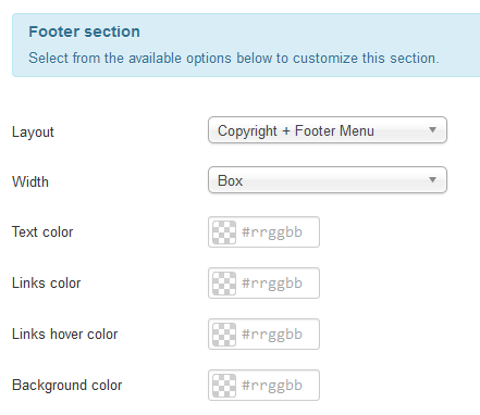 The template has 3 layouts for the footer section that can be configured from the "Layout & Colors" tab of the template's configuration page.